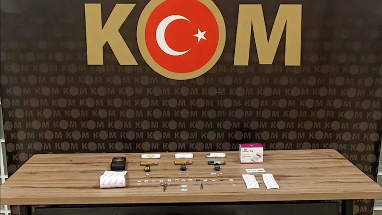 Şüpheliler ve otomobilde yapılan aramada,1 adet tabanca, 2 adet sim kart, 4 adet kulaklık, 1 adet makas, 2 adet kamera, 2 adet wifi cihazı, 2 adet veri aktarım cihazı, 1 adet powerbank, 18 adet sim kart aparatı ele geçirildi.