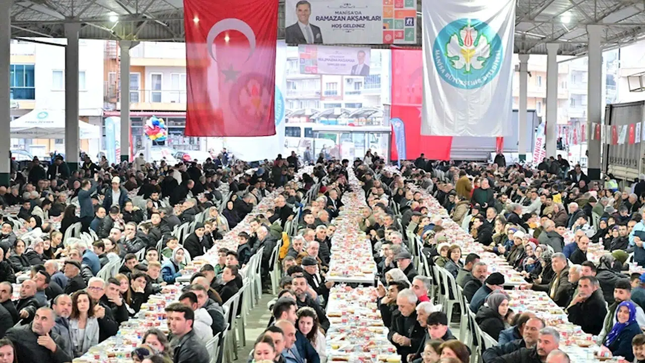 Manisa Büyükşehir Belediyesi, şehrin çeşitli noktalarında kurduğu iftar sofraları ile vatandaşlara iftarlarını açma imkanı sağlıyor. Büyükşehir, ramazanın ikinci gününde, Saruhanlı İlçesi Kapalı Pazaryeri'nde geniş katılımlı bir iftar programı düzenledi. 2 bini aşkın kişinin katıldığı programda, Manisa Büyükşehir Belediye Başkanı Ferdi Zeyrek'in yanı sıra CHP Genel Başkan Yardımcısı Suat Özçağdaş, CHP Manisa İl Başkanı İlksen Özalper, Saruhanlı Kaymakamı Murat Acar, Saruhanlı Belediye Başkanı Ekrem Cıllı, Yunusemre Belediye Başkanı Semih Balaban, siyasi parti temsilcileri ve vatandaşlar yer aldı.