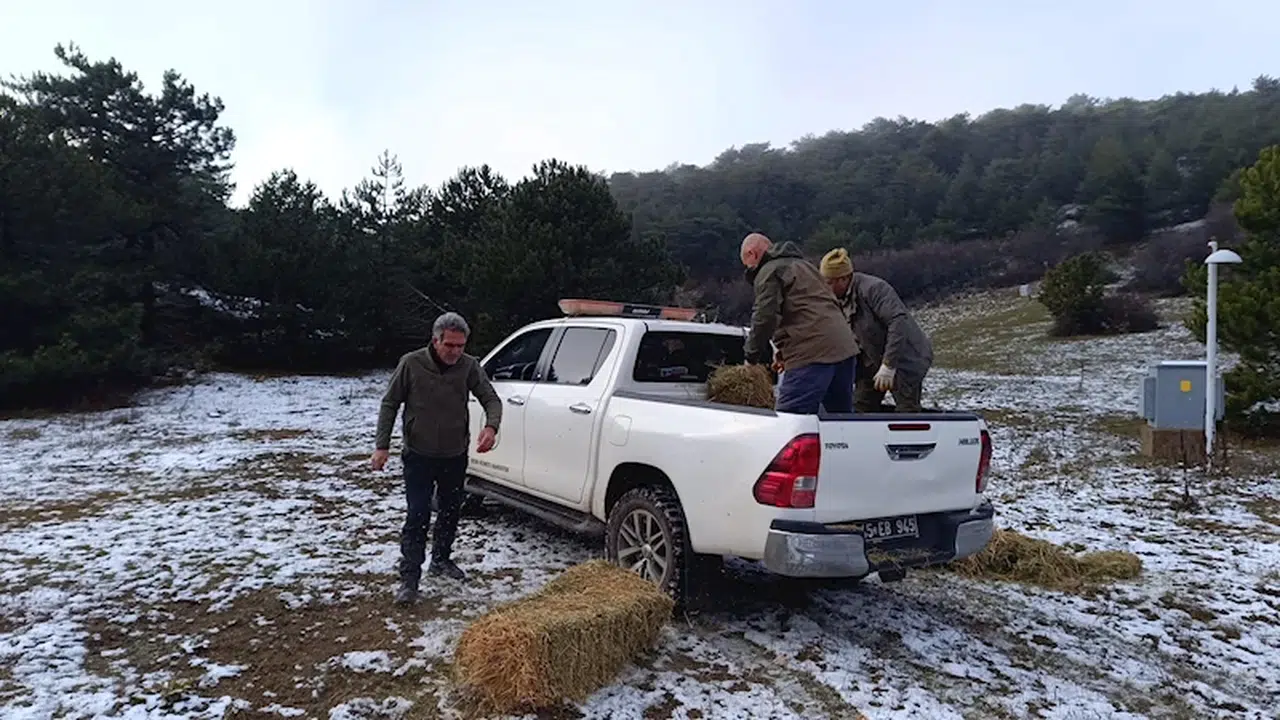 Manisa'da yaban hayvanları için doğaya yem bırakıldı