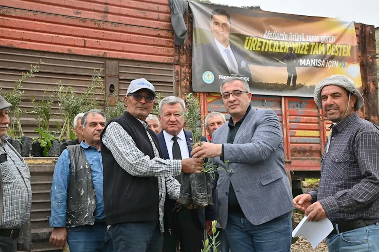 MANİSA Büyükşehir Belediyesi, 2024 yazında çıkan yangınlarda ekili dikili alanları zarar gören Gördes'te Boyalı, Karayakup, Merkeztepe ve Yeniköy mahallelerinde; Salihli'de Hacıhıdır, Kemer, Kurttutan, Kale, Yağbasan, Karasavcı, Dombaylı ve Eminbey mahallelerinde; Alaşehir İsmailbey Mahallesi'nde; Soma'da Tekeli, Işıklar, Karacakaş ve Bayat mahallelerinde, Saruhanlı Büyükbelen, Lütfiye ve Pınarbaşı mahallerinde, Akhisar'da Eroğlu mahallesinde, Şehzadeler Sancaklıçeşmebaşı mahallesinde, 330 üreticiye fidan dağıttı.Toplam 65 bin zeytin, 1580 adet ceviz fidanı üreticilere teslim edildi.
