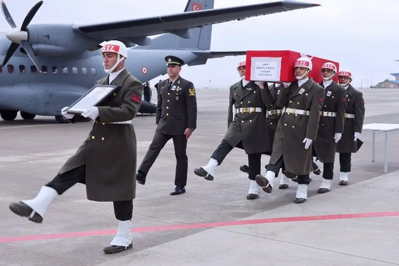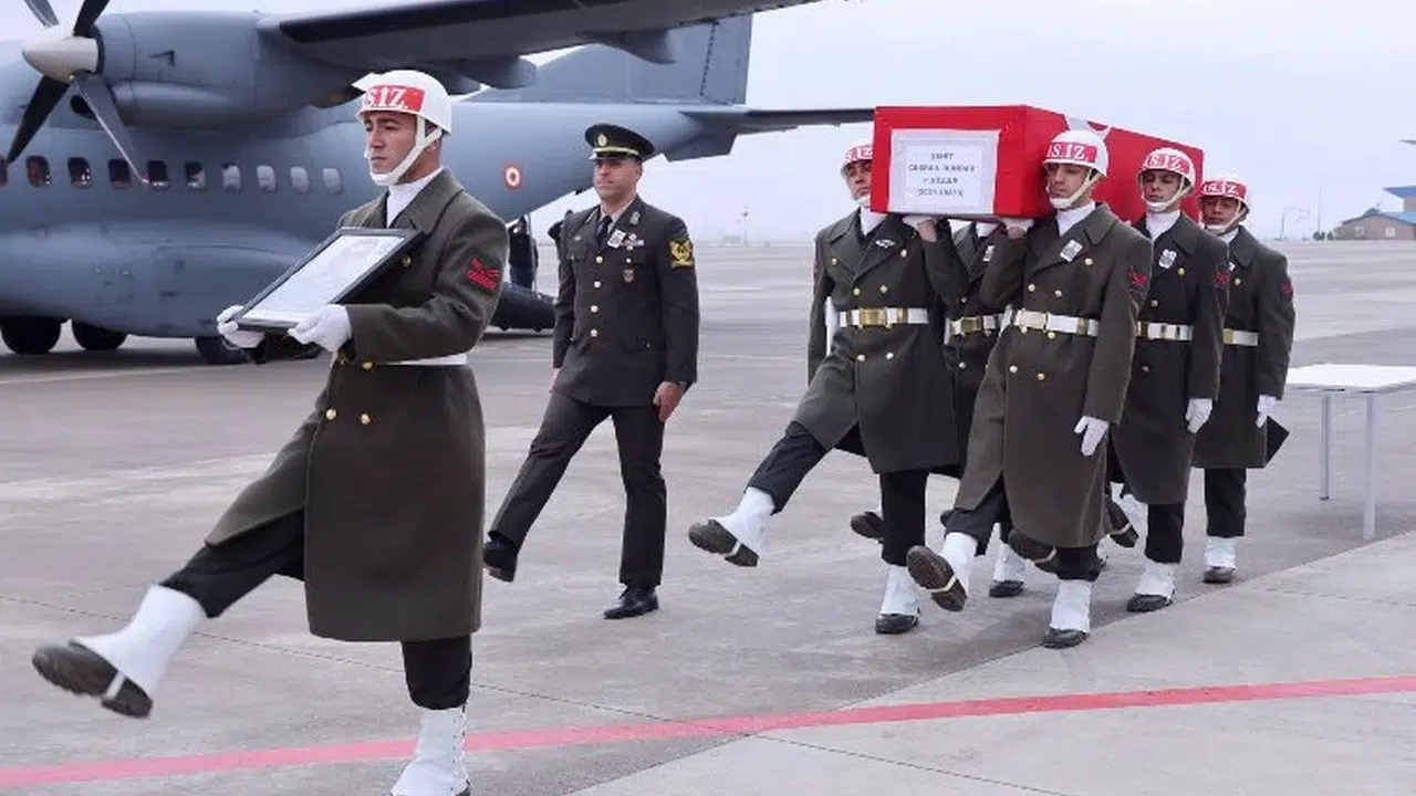 Irak´ın kuzeyinde yürütülen Pençe-Kilit harekat bölgesinde üs bölgesine sızmaya çalışan teröristlerle çıkan çatışmada şehit olan askerlerden Piyade Sözleşmeli Er Cebrail Dündar´ın Türk bayrağına sarılı naaşı, askeri uçakla Mardin Prof. Dr. Aziz Sancar Havalimanı´na getirildi.