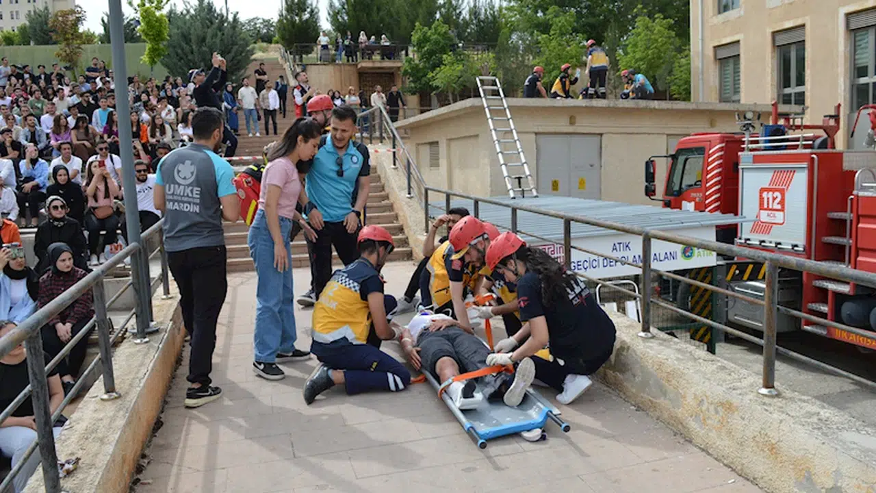 Salih KESKİN/MARDİN,(DHA)- MARDİN Artuklu Üniversitesi’nde (MAÜ), 7 kurumun katılımıyla acil durum ve ilk yardım tatbikatı düzenlendi.