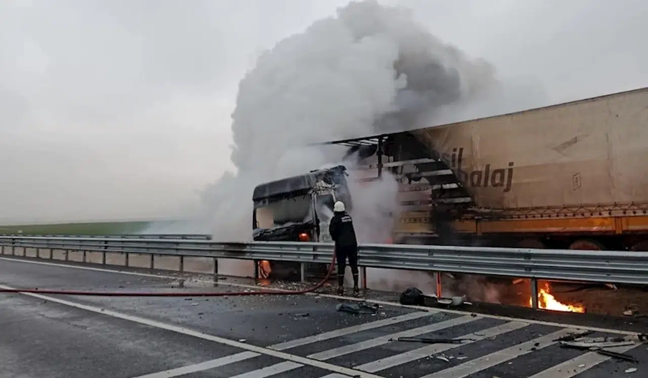 Mardin'de bariyere çarpıp alev alan TIR’ın şoförü yaralandı