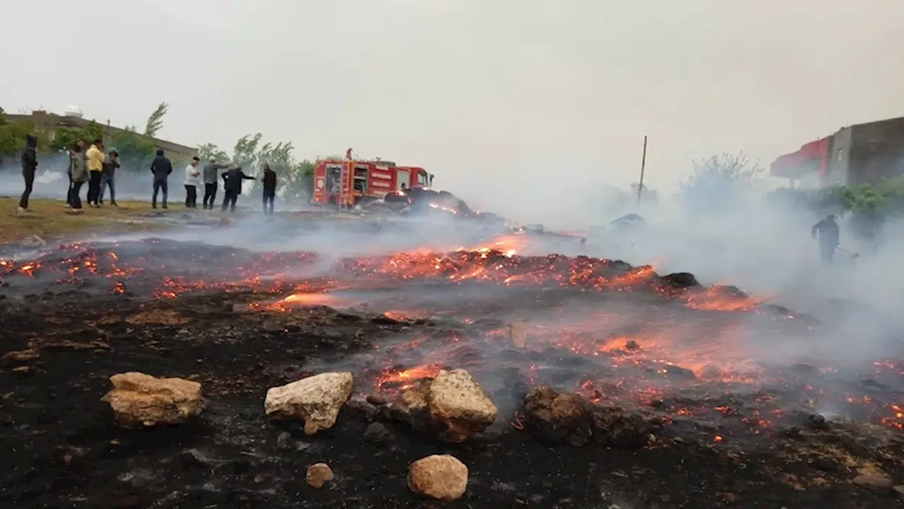 Salih KESKİN/ MAZIDAĞI (MARDİN),(DHA)-MARDİN'in Mazıdağı ilçesinde çıkan yangında tonlarca saman balyası küle döndü.
