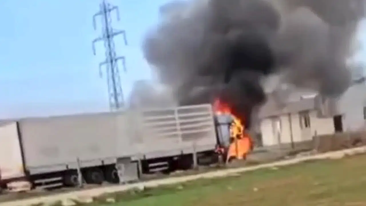 Mardin'de park halindeki 2 TIR alev alev yandı