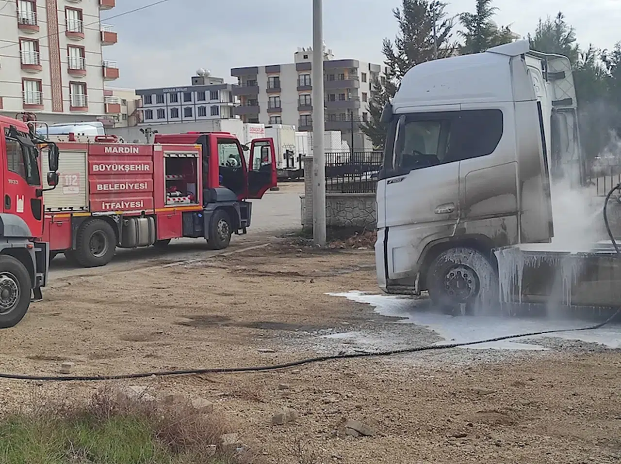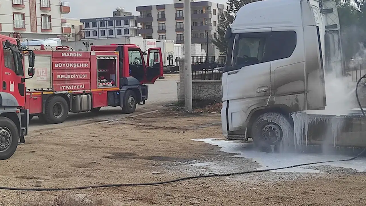 Salih KESKİN/KIZILTEPE (Mardin),(DHA)- MARDİN'in Kızıltepe ilçesinde park halindeki TIR’da çıkan yangın, söndürüldü.