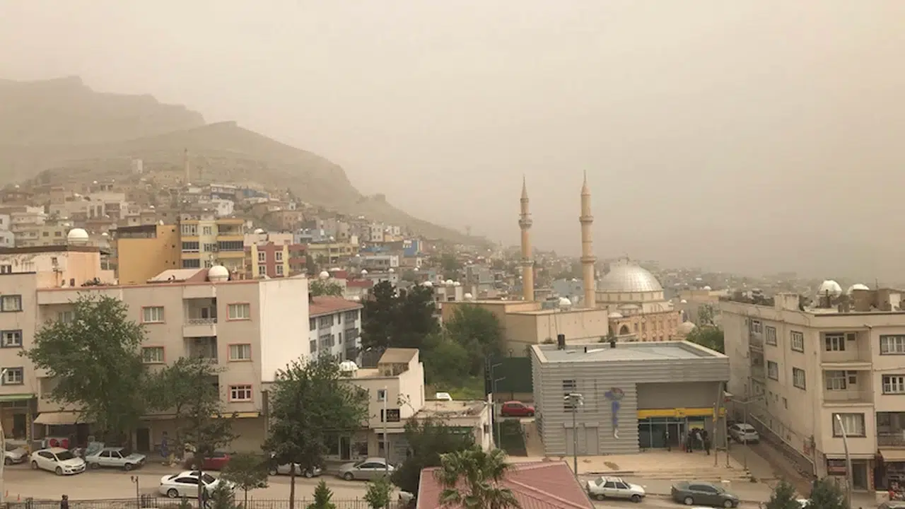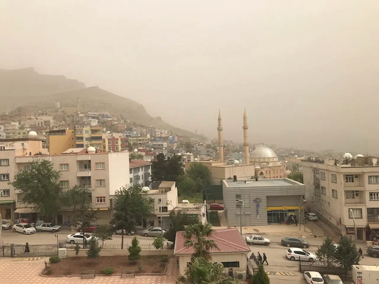 Mardin’in Derik ilçesinde etkili olan toz taşınımı, hayatı olumsuz etkiledi. Gökyüzü turuncu renge bürünürken, vatandaşlar maskeyle sokağa çıktı. Evlerin balkonları ve araçların üzerleri ise tozla kaplandı. Toz nedeniyle maske takan Sedat Özdemir, “Toz taşınımından dolayı etkilendik. Herkesin maske takmasını tavsiye ediyorum” dedi. (DHA)