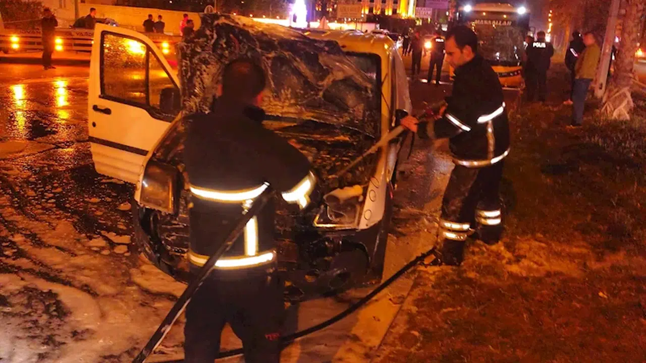 Mardin'de zincirleme kazada hafif ticari araç alev aldı; 1 yaralı