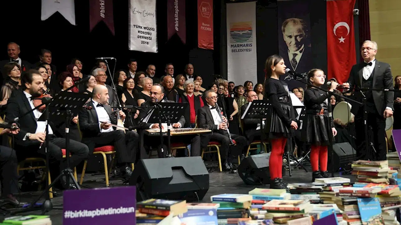 Marmaris Belediyesi tarafından 24 Kasım Öğretmenler Günü nedeniyle Türk sanat Müziği konseri düzenlendi. 'Bir kitap biletin olsun, sayenizde kütüphanemiz kitapla dolsun' sloganıyla düzenlenen konsere, izleyiciler, bilet almak yerine kitaplarla geldi. Marmaris Belediyesi bünyesinde yeni kurulacak kütüphane için ilk adım olan konseri Marmaris Belediye Başkanı Acar Ünlü, CHP Marmaris İlçe Başkanı Ömer Bozdemir, Meclis Üyeleri ve çok sayıda vatandaş izledi. Armutalan Kültür Merkezi'nde Şef Tuğberk Çelikkol yönetimindeki konserde Erdinç Çelikkol Türk Müziği Derneği, Bursa İTÜ Türk Müziği Derneği ve Yüzüncü Yıl Orhangazi Cumhuriyet Korosu sahne aldı. Bursa'dan gelen koro üyeleri de yanlarında 17 koli kitap getirerek katkıda bulundu.Konserin organizasyonunu yapan Elif Neslihan Hanoğlu “Ben ve dostlarımın 4 yıl önce Bursa'da bir Türk Müziği konserinde başlattığımız projeyi, gönüllülerimizle birlikte Türkiye'nin dört bir tarafına yayılıyoruz. Hem kitap hem de müzikle buluşuyoruz" dedi.