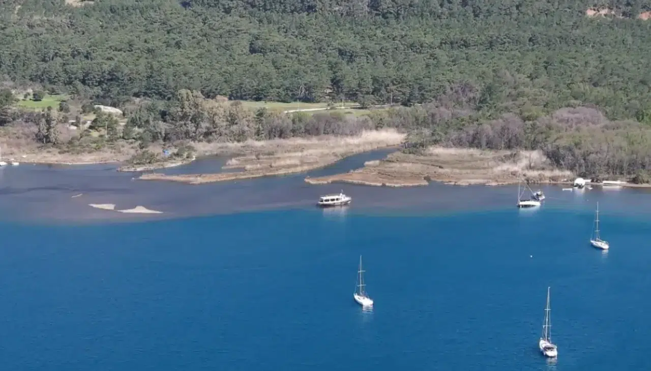 Marmaris’e bağlı Adaköy Mahallesi Yalancıboğaz mevkisinde deniz suyunun çekilmesiyle birlikte kıyı hattında kum adacıkları oluştu. Bölgede demirli bulunan bazı teknelerin ise salmalarının karaya oturması nedeniyle yan yattığı gözlendi.