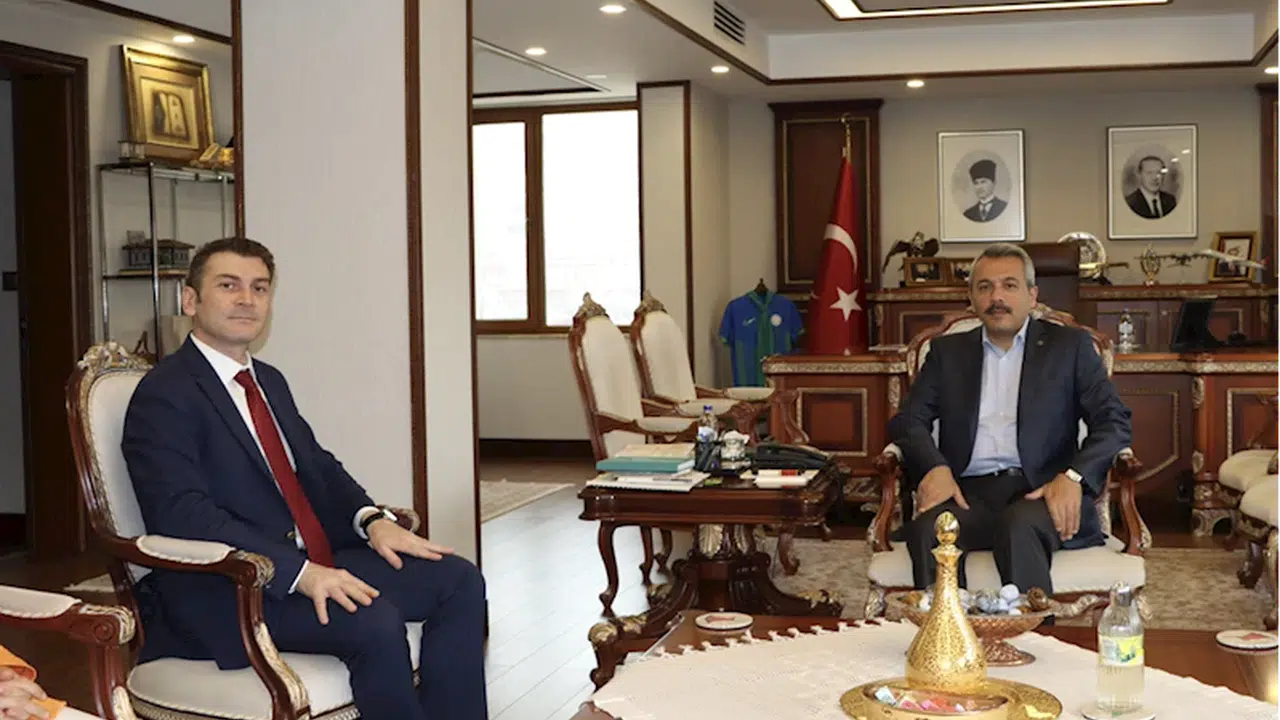 Kente gelen Mustafa Canlı, MEB Dijital Beceriler Daire Başkanı Sümeyye Hatice Eral, Özel Büro Daire Başkanı Emrullah Uzun ve İl Milli Eğitim Müdürü Yusuf Tüfekçi ile Vali İhsan Selim Baydaş'ı makamında ziyaret etti.