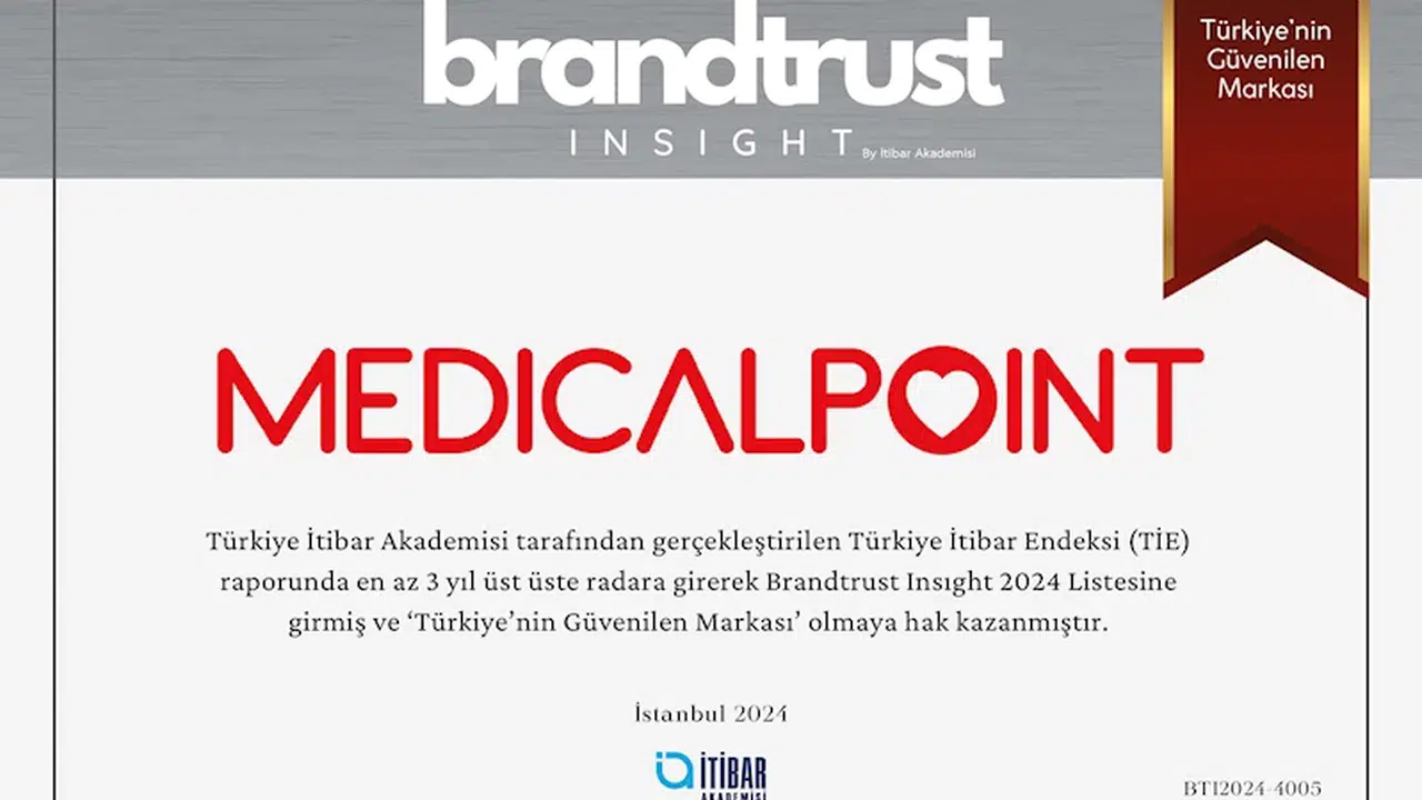Yaklaşık 15 bin kişinin katılımıyla, en az 5 yıldır faaliyet gösteren firmalar arasında yapılan çalışmada, 3 yıl üst üste radara giren Medical Point Hastanesi, Brandtrust Insight 2024 listesinde 'Türkiye'nin Güvenilen Markası' ünvanını aldı.