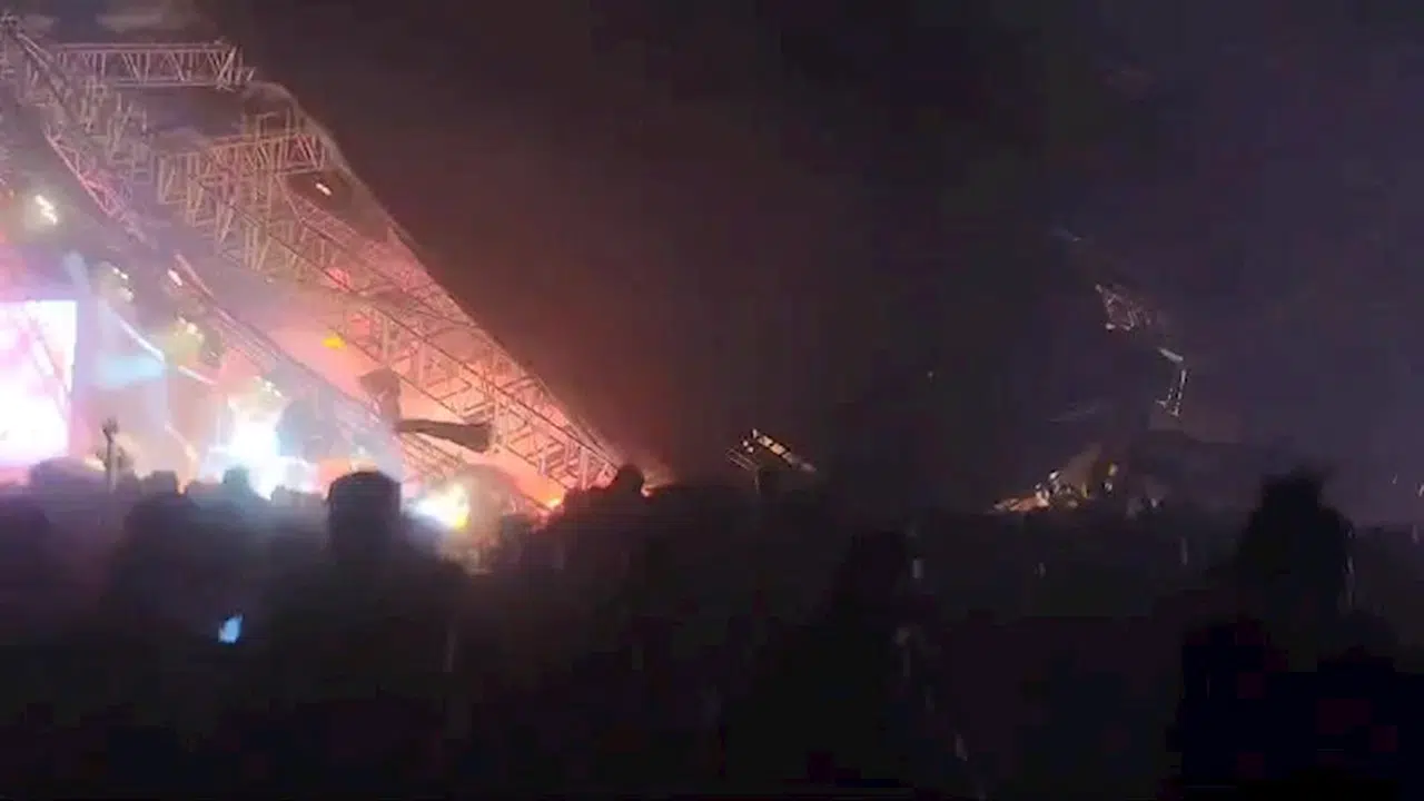 Sahnenin çökme anı, seyircilerin kameralarınca saniye saniye kaydedildi.
