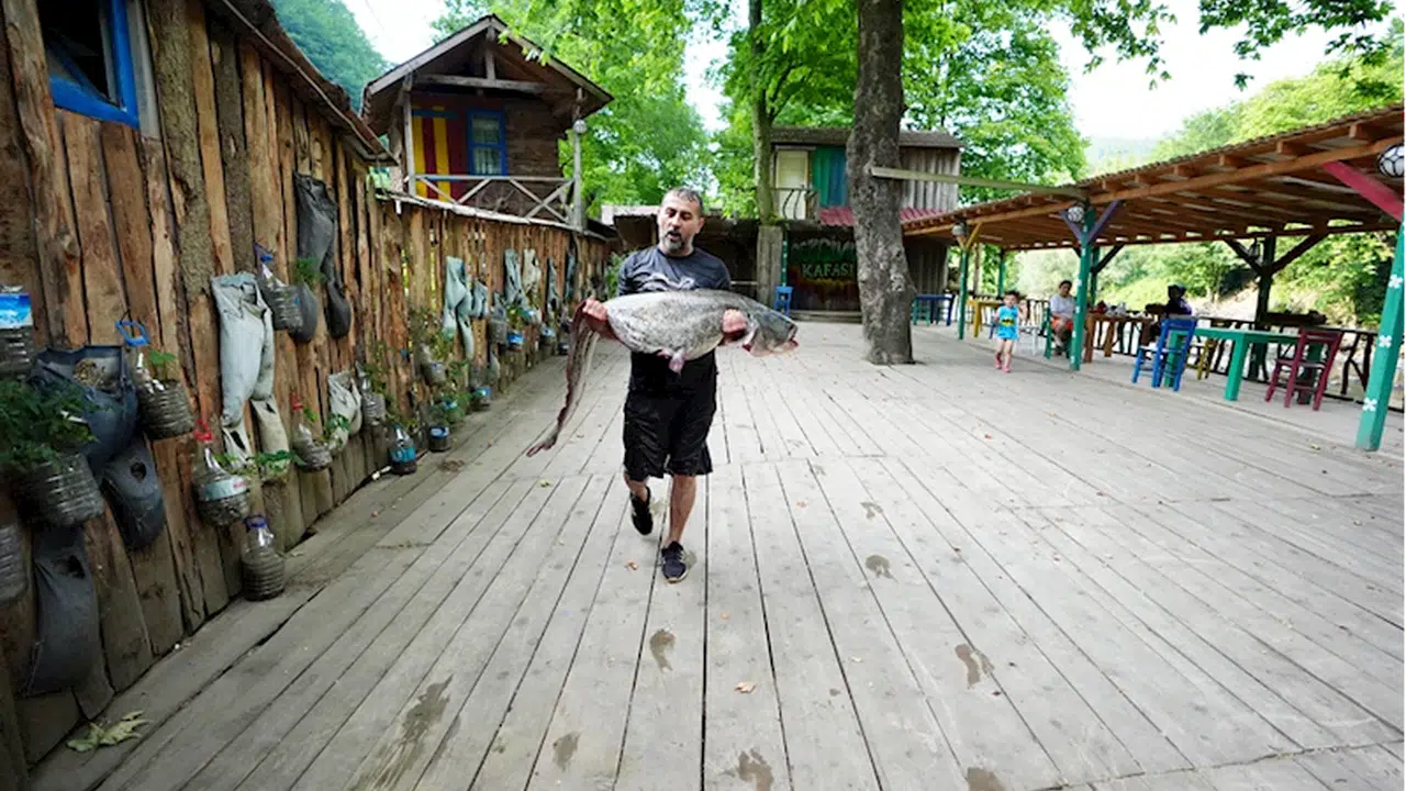 İlçeye bağlı Harmankaya köyünde turizm ve rafting işletmeciliği yapan Davut Pirdal, balık tutmak için oltasını Melen Çayı'na attı.