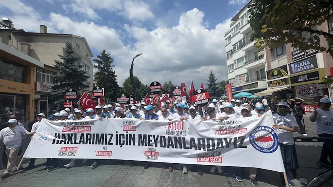 Büro Memur-Sen Genel Başkanı Yusuf Yazgan, Enerji Bir-Sen Genel Başkanı Hacı Bayram Tonbul, Ulaştırma Memur-Sen Genel Başkanı Kenan Çalışkan'ın açıklamalarının ardından sendika üyeleri, Kent Meydanı'ndan Ankara'ya yürüyüşe başladı.