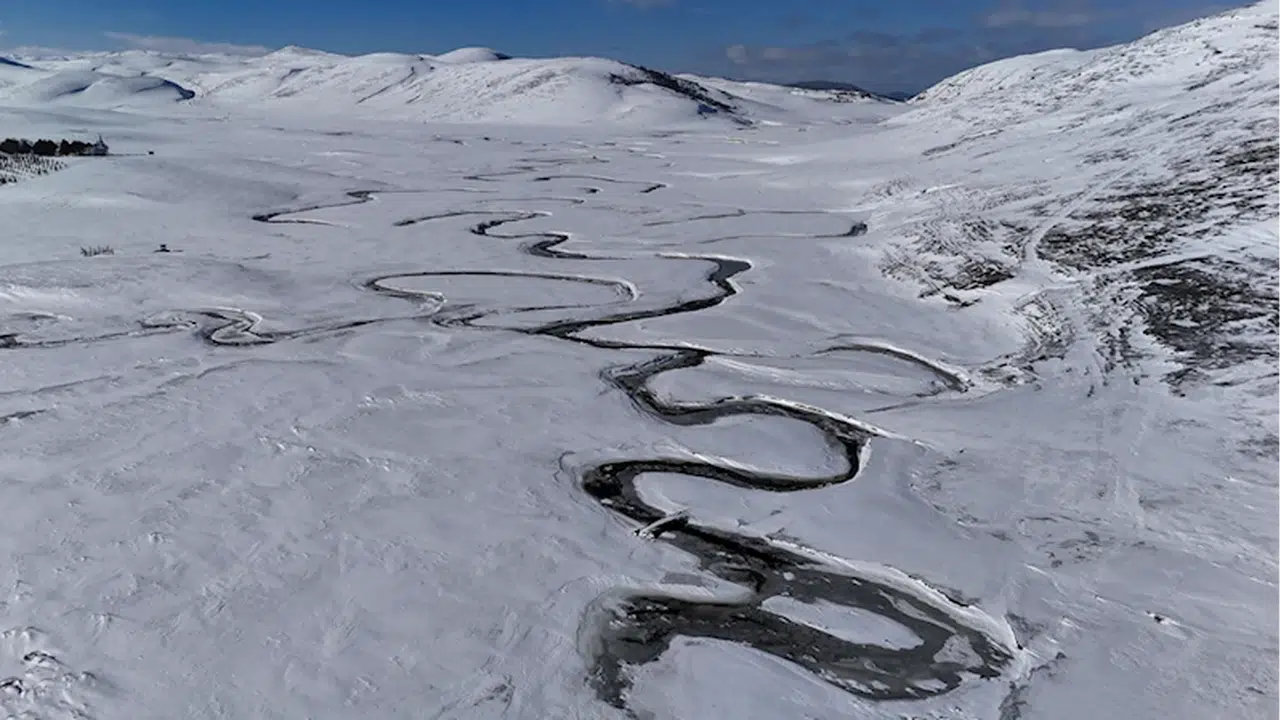 Karla kaplanan yayla, dronla da havadan görüntülendi.