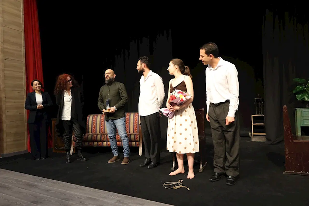 Oyunun sonunda, Odunpazarı Belediye Tiyatrosu Genel Sanat Yönetmeni Elçin Karaahmet, Menteşe Belediye Tiyatrosu Genel Sanat Yönetmeni Önder Çakır'a tiyatro sanatına katkılarından dolayı bir plaket takdim etti.(DHA)
