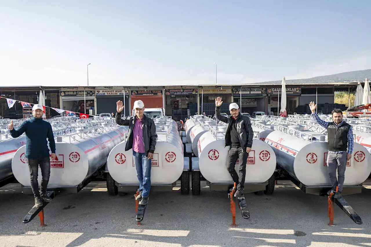 Konuşmaların ardından Başkan Seçer ve protokol üyeleri tarafından yetiştiricilere sulama tankerleri teslim edildi. (DHA)