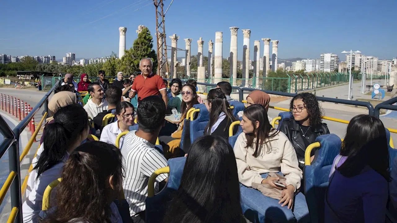 Mersin Kent Konseyi koordinesinde düzenlenen tanıtım turlarında öğrenciler üstü açık otobüs ile şehir turu atıyor. ‘10 numara öğrenci kenti Mersin’de okumak için gelen genç üniversiteliler kısa süre önce kente yerleşti. Okul dönemine başlayan ve Mersin’i yavaş yavaş tanımaya çalışan öğrenciler, hocaları eşliğinde tanıtım turuna katıldı.