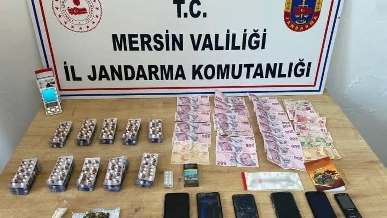 İl Jandarma Komutanlığı ekipleri, Gülnar ilçesinde yaptığı araştırmalar sonucunda 5 şüphelinin uyuşturucu madde imal ve ticareti yaptığını tespit etti. Tespit edilen şüphelileri takibe alan jandarma düzenlediği eş zamanlı operasyonlarla gözaltına aldı. Şüphelilerin ev, işyeri ve araçlarında yapılan aramalarda 602 adet sentetik hap, 5 gram metamfetamin, 2 gram kubar esrar, 1 adet uyuşturucu madde kullanma aparatı, 6 adet cep telefonu, 1 adet çek-senet ile 5 bin TL nakit paraya el konuldu. Jandarmadaki işlemlerinin ardından adliye sevk edilen şüphelilerden 4'ü tutuklanarak cezaevine gönderilirken, 1 şüpheli adli kontrol şartı ile serbest bırakıldı. (DHA)