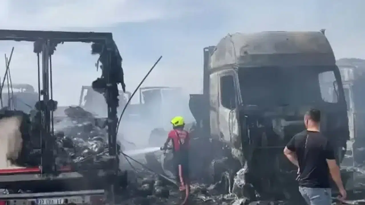 Yangın, kısa sürede yandaki 4 TIR'a daha sıçradı.İhbar üzerine bölgeye sevk edilen itfaiye ekipleri alevlere müdahale etti. 5 TIR yanarak kullanılmaz hale geldi. Yangınla ilgili inceleme başlatıldı.