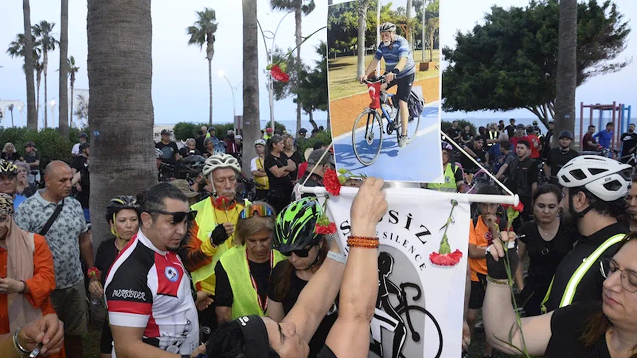 Mustafa ERCAN/ MERSİN, (DHA)- MERSİN'de Bisikletli Gezginler Derneği üyeleri, bisikletli Halit Kırelli'nin (63) otomobilin çarpması sonucu hayatını kaybettiği kaza yerine beyaz bisiklet ve kırmızı karanfil bırakarak tepki gösterdi.
