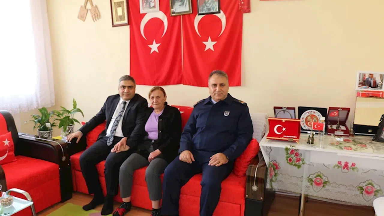 Kaymakam Karaaslan, Şehit Hava Pilot Üsteğmen Murat Türkmen ile Şehit Piyade Er Halil Aydoğdu'nun ailesi ve gazi Mikdat Gemici'yi ziyaret etti.