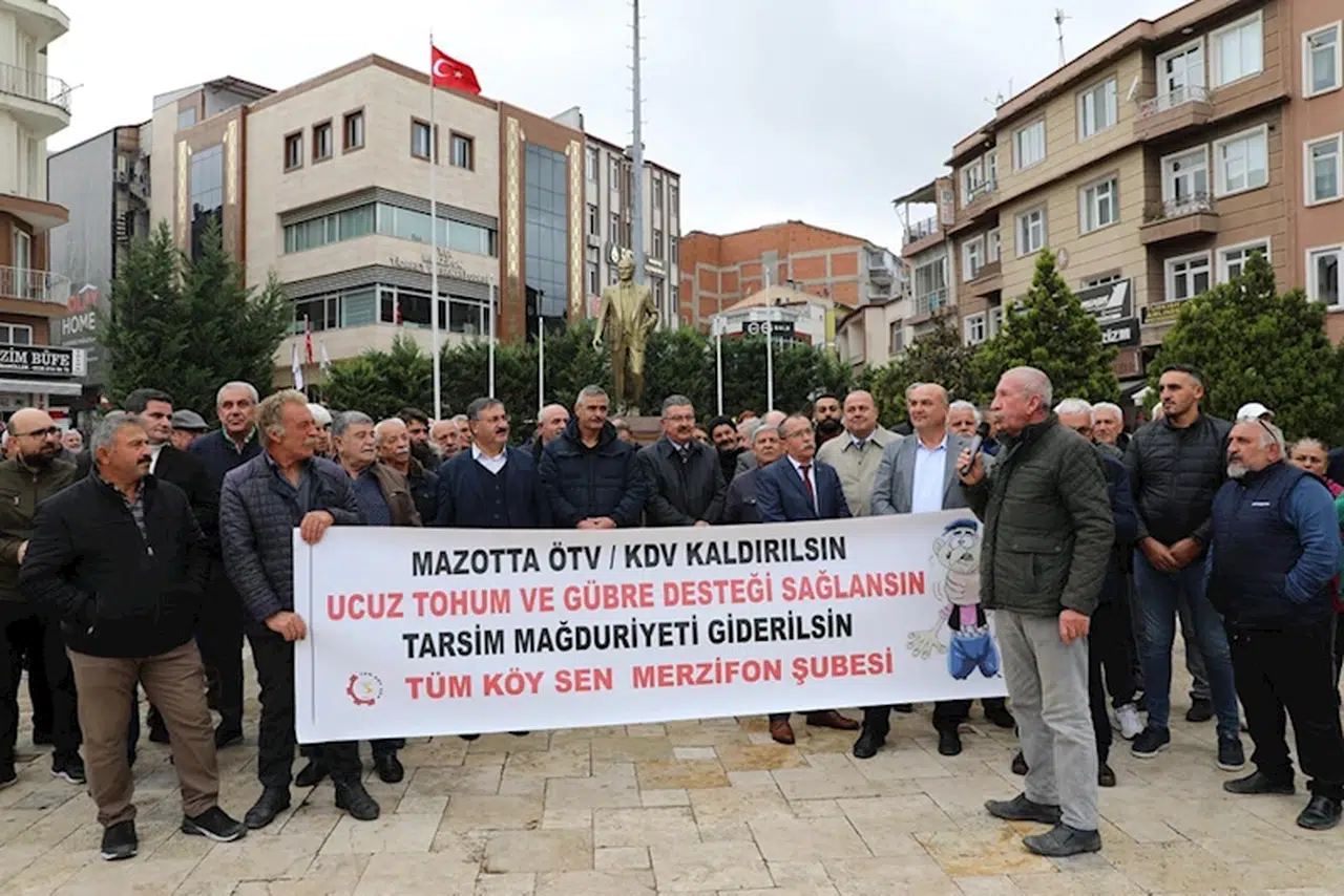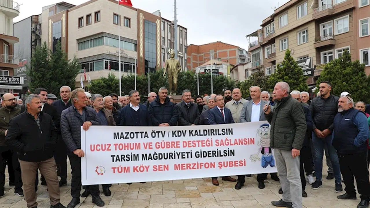 AMASYA (AA) - Merzifon ilçesinde, Tüm Üretici Köylüler Sendikası (Tüm Köy Sen) üyeleri, ucuz tohum ve gübre desteğinin sağlanması talebiyle basın açıklaması yaptı.