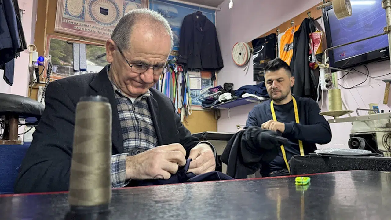 Meslektaş baba oğul 18 yıldır aynı terzi dükkanında mesai yapıyor