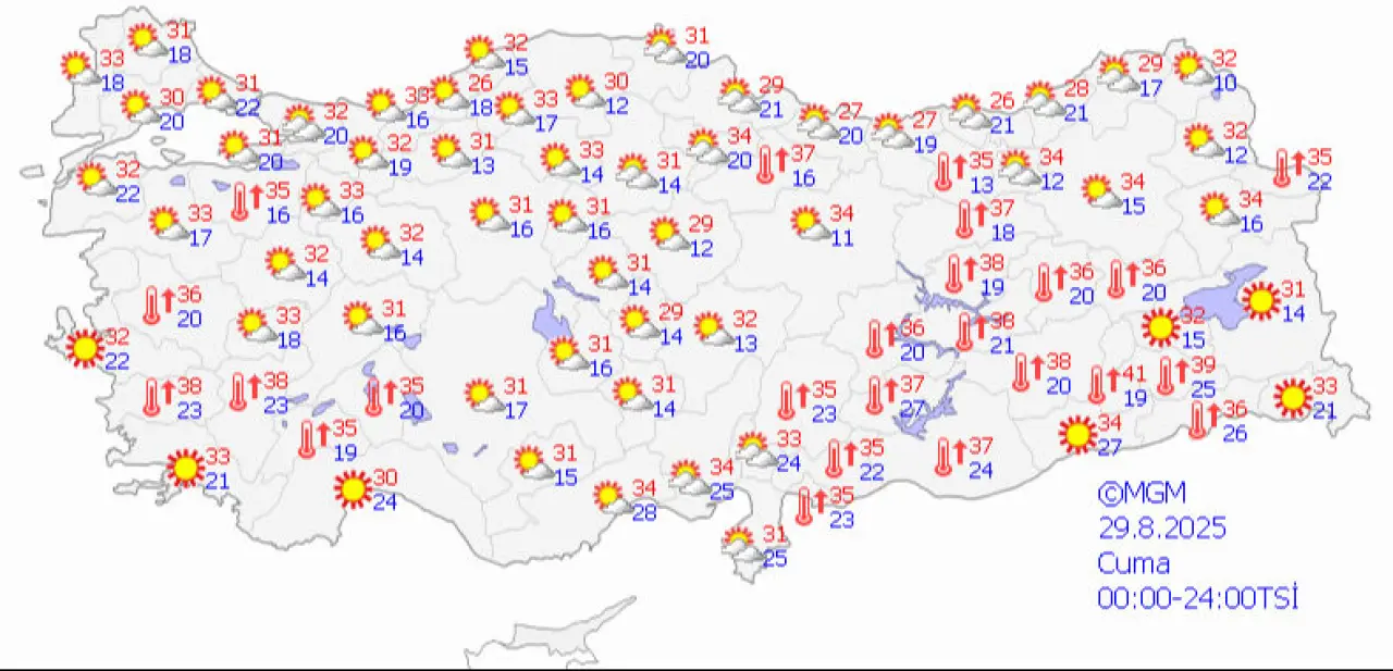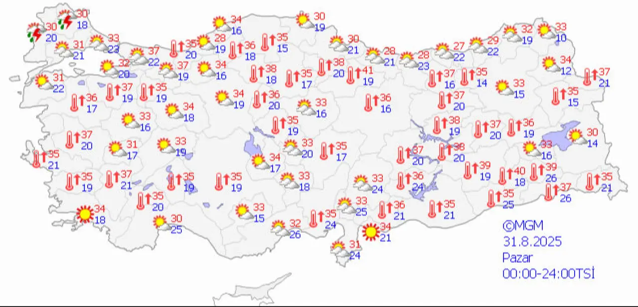 Meteoroloji son dakika hava durumu tahminlerini paylaştı, Ağustos ayının son günlerinde yurtta sağanak beklenen iller belli oldu. Doğu Karadeniz ve Adana-Hatay çevrelerinde bugün yer yer yağmur görülecek, diğer bölgelerde hava açık seyredecek. Hafta sonu ise Afrika'dan gelen yeni sıcak hava dalgası yurdu saracak, sıcaklıklar yeniden zirve yapacak. İşte merak edilen detaylar ve günün tahminleri...