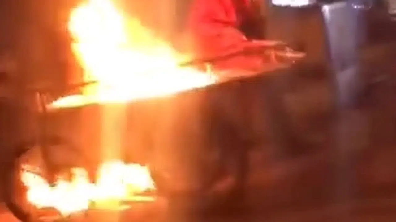 Meyve sattığı seyyar tezgahını ateşe verdi