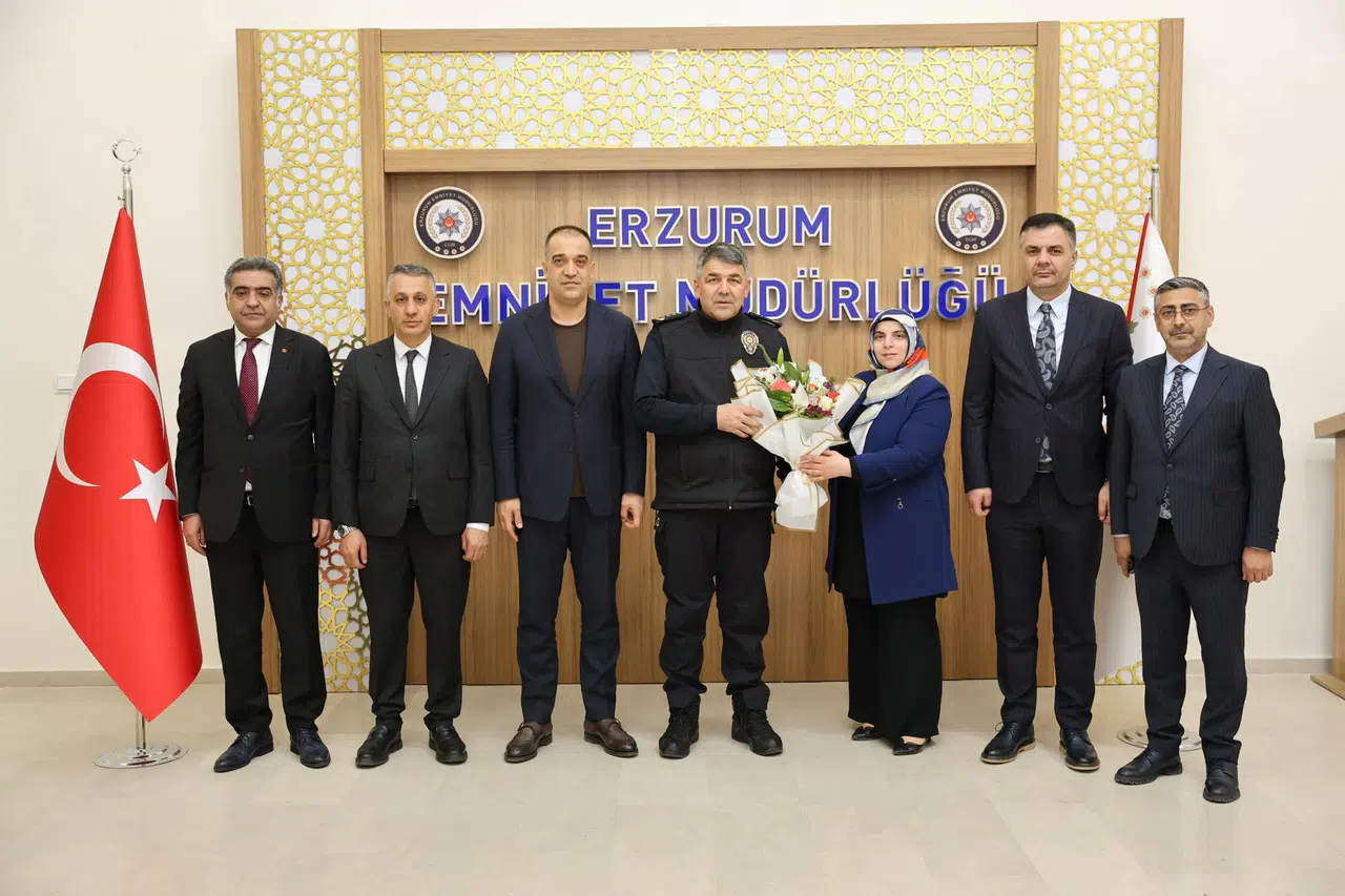 Heyet, Erzurum İl Emniyet Müdürü Onur Karaburun’u makamında ziyaret ederek, onun nezdinde tüm polis teşkilatının kuruluş yıl dönümünü kutladı. Ziyarette, Türk polisinin ülkenin huzur ve güvenliği için üstlendiği önemli görevlere dikkat çekilirken, fedakârlık ve özveri vurgusu yapıldı.