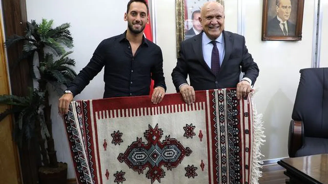 İtalya Birinci Futbol Ligi (Serie A) takımlarından Inter'de başarılı bir performans sergileyen milli oyuncu Çalhanoğlu, belediye başkanıyla buluşarak memleketine dönmenin mutluluğunu yaşadı.