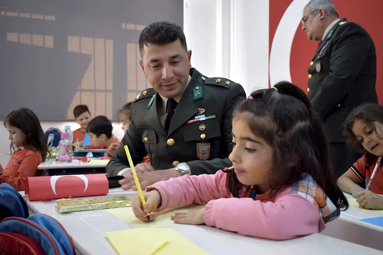 Aysu DURSUN/ANTALYA, (DHA)- MİLLİ Eğitim Bakanlığı ile Milli Savunma Bakanlığı iş birliğinde çocukların vatan ve millet sevgisi farkındalığı için hayata geçirilen 'İlk Mektubum Mehmetçiğe' projesi kapsamında, Antalya'daki Yüzbaşı Mustafa Ertuğrul İlkokulu 1'inci sınıf öğrencileri, Artvin'deki askerlere mektup gönderdi.
