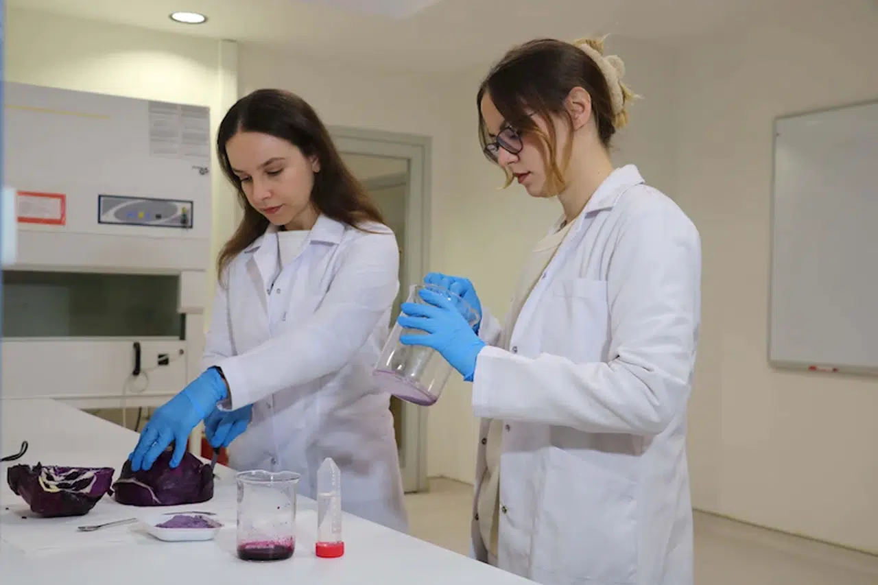 "Bunları daha kalıcı halde tutup kozmetik ürünlerde kullanmak için çalışmalar yapıyoruz. Şu anda kırmızı, mavi ve morun tonlarını elde ediyoruz. Renkleri elde edebilmek ve uzun ömürlü kullanabilmek amacıyla mor lahanayı eksi 18 derecede dondurma sürecimiz oluyor. Daha sonrasında pigmentin özütlenmesi çalışmalarını yürütüyoruz ve kalıcılığının sağlanması üzerine de çalışmalar yapıyoruz. En sonunda da testler yapılarak çıkarılan miktar tespit edilecek. Şu an yanak ve dudak renklendirmek için allık ile ruj ürünleri elde etmeyi amaçlıyoruz. Daha sonrasında far yapmayı düşünüyoruz."
