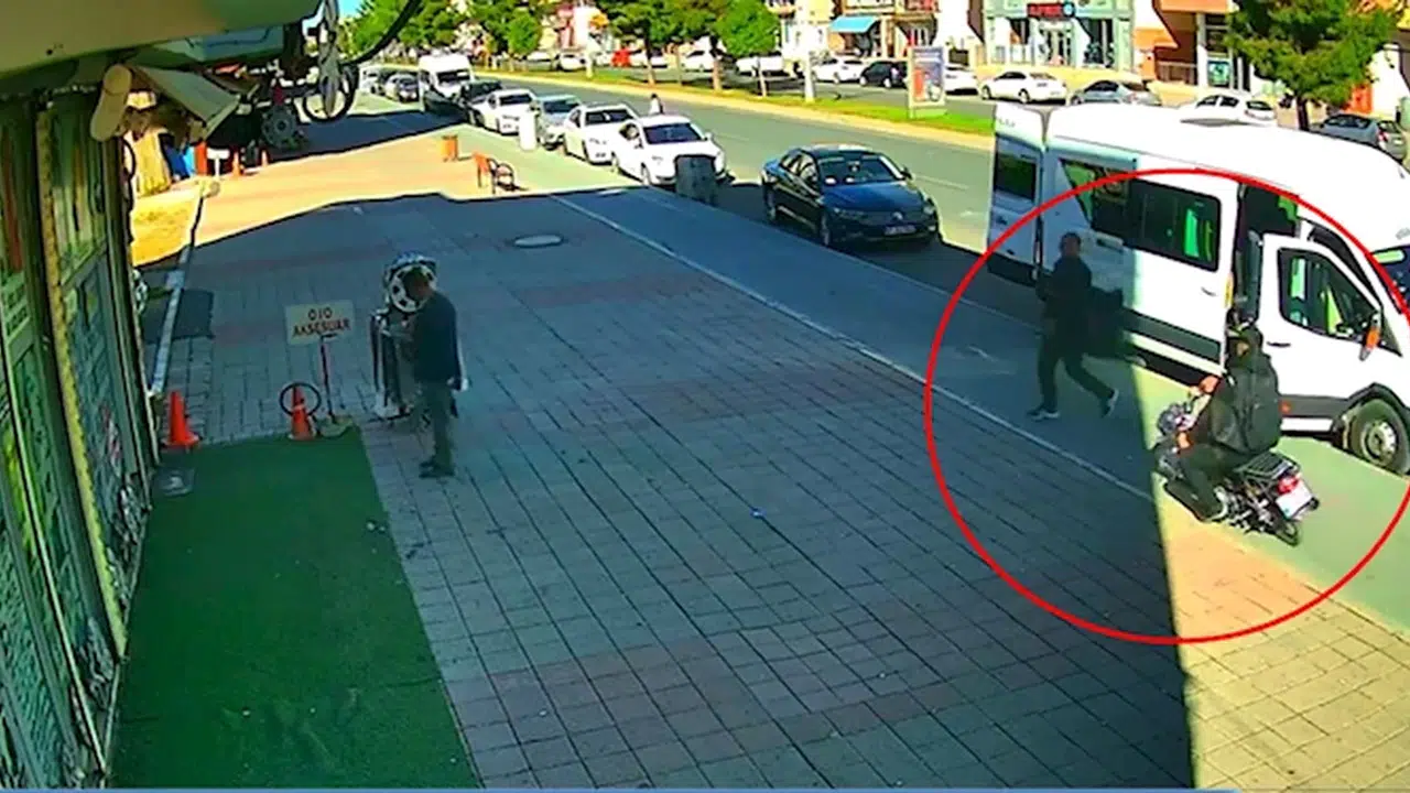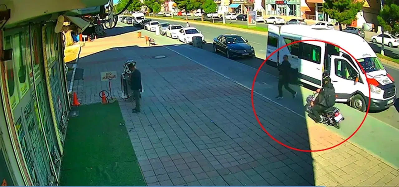 Salih KESKİN/MİDYAT (Mardin), (DHA)- MARDİN'in Midyat ilçesinde minibüsten inerek kaldırımda yürüyen Murat B.'ye motosiklet çarptı. Murat B. ağır yaralanırken, kaza güvenlik kamerasına yansıdı.