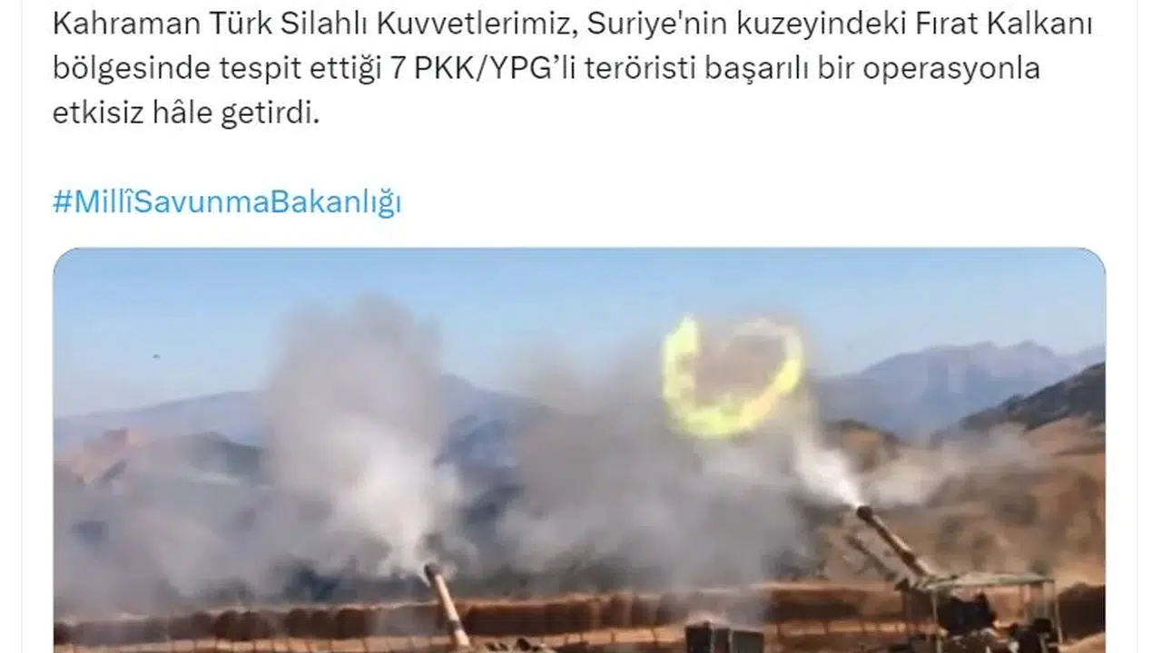 ANKARA, (DHA)- MİLLİ Savunma Bakanlığı (MSB), Suriye'nin kuzeyindeki Fırat Kalkanı bölgesinde 7 PKK/YPG'li teröristin etkisiz hale getirildiğini açıkladı.