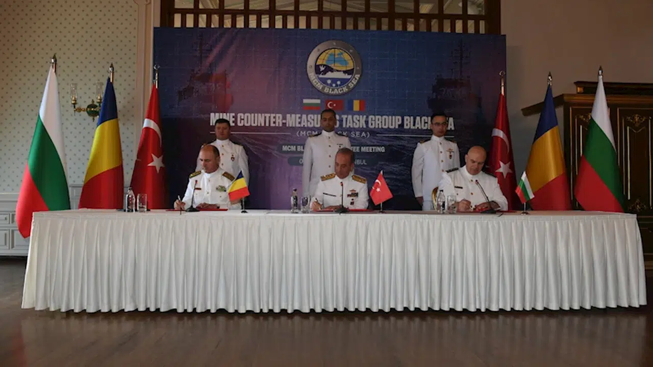 MCM BLACK SEA Komite Toplantısı ve imza töreni, bugün İstanbul’da Türk Deniz Kuvvetleri Komutanı Oramiral Ercüment Tatlıoğlu, Romanya Deniz Kuvvetleri Komutanı Koramiral Mihai Panait ve Bulgaristan Deniz Kuvvetleri Komutanı Tümamiral Kiril Yordanov Mihaylov’un katılımıyla düzenlendi. (DHA)