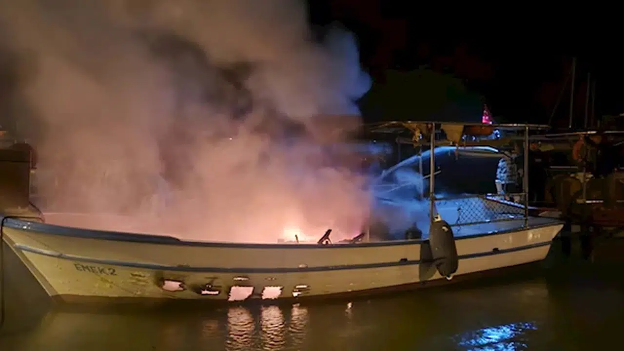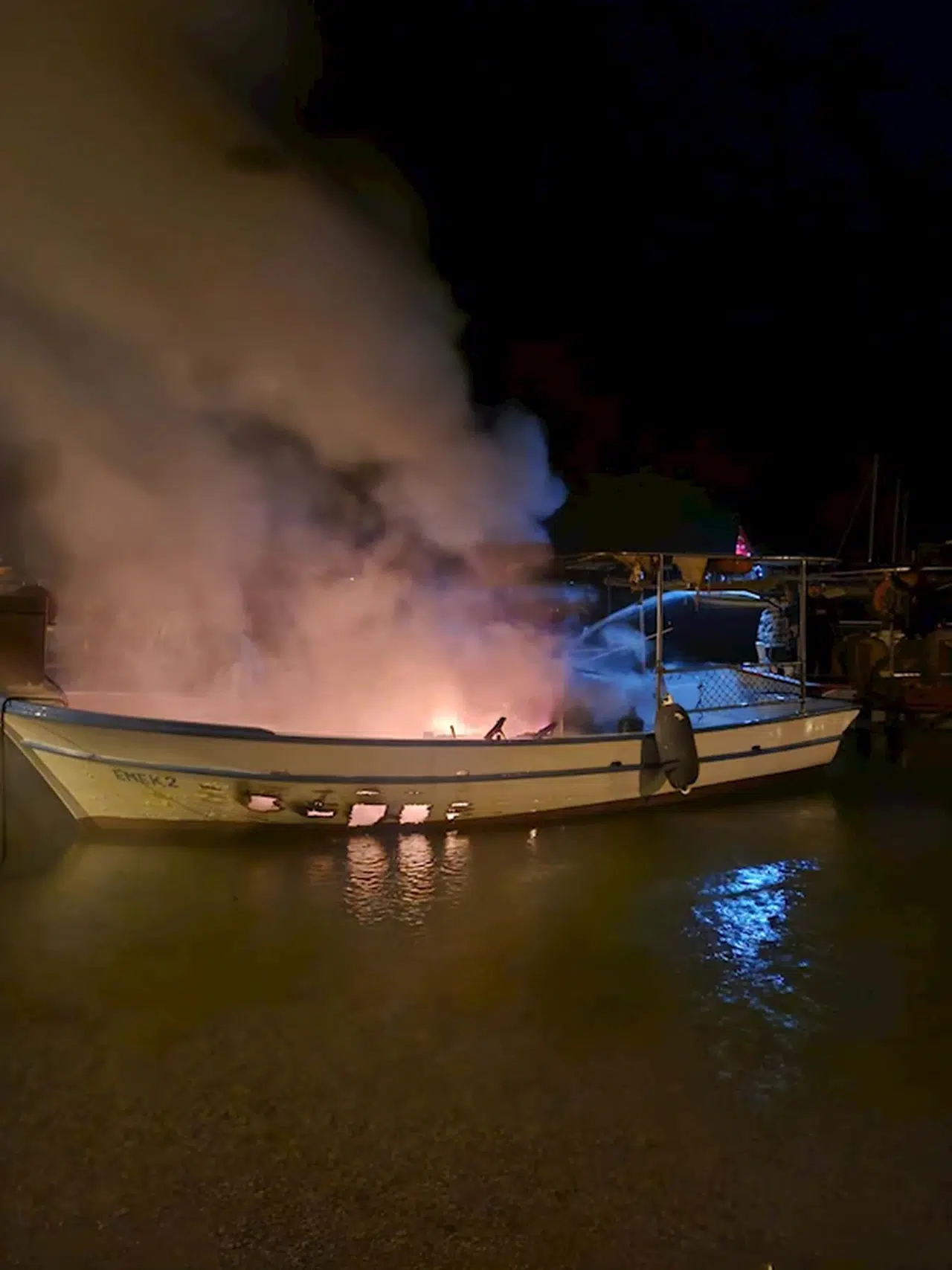 Yangın, saat 05.30 sıralarında Akbük Koyu'nda 'Emek' isimli balıkçı teknesinde henüz belirlenemeyen nedenle çıktı. Alevleri gören tekne sahibi Sedat Yıldızhan ve arkadaşı Öner Altaş, yangının diğer teknelere sıçramasını önlemek için tekneyi kıyıya çekti. Alevleri gören çevredekiler, durumu itfaiye ekiplerine bildirdi. Yangın itfaiyenin yaklaşık 1 saatlik çalışmasıyla söndürülürken, teknede büyük çapta hasar meydana geldi.(DHA)