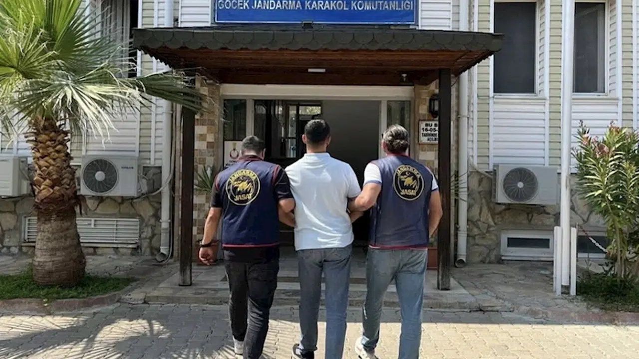 Muğla İl Jandarma Komutanlığı Jandarma Suç Araştırma Timi (JASAT) tarafından aranan şahısların yakalanmasına yönelik yürütülen çalışmalar kapsamında, hakkında 3 ayrı suçtan toplam 12 yıl 6 ay 21 gün kesinleşmiş hapis cezası bulunan H.K., Fethiye ilçesi Göcek Mahallesi’nde olduğu belirlendi. İki ayrı silahlı tehdit ve firar suçlarından aranan H.K.'nin saklandığı eve operasyon düzenlenip, yakalandı. Gözaltına alınan H.K., sevk edildiği adliyede çıkarıldığı mahkemece tutuklandı.(DHA)