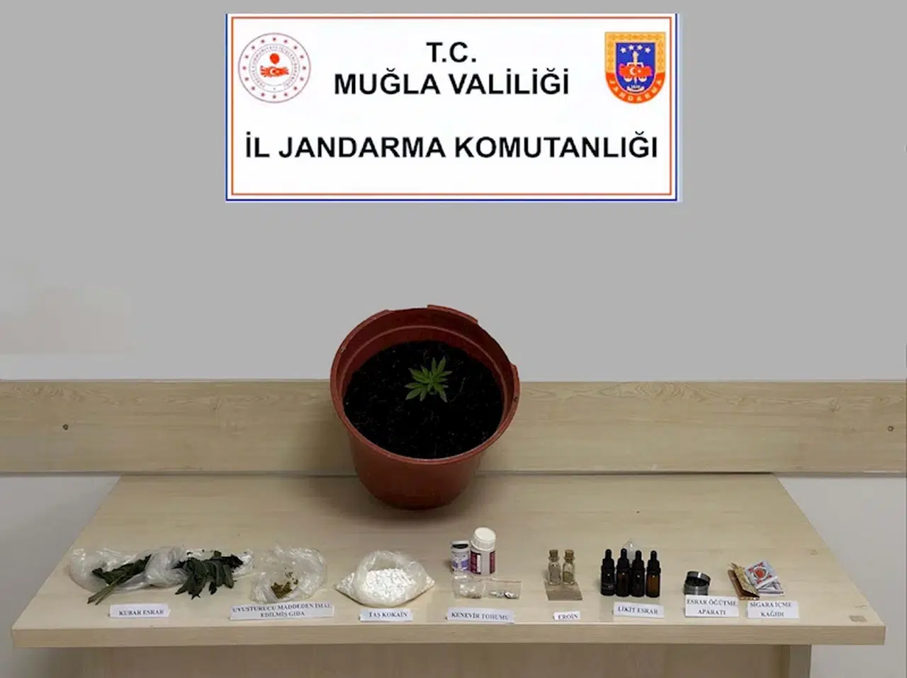 İl Jandarma Komutanlığı ekipleri, Fethiye'de yaşayan N.G.'nin piyasaya uyuşturucu süreceği bilgisine ulaştı. Cumhuriyet Başsavcılığı koordinesinde; şüphelinin Ölüdeniz Mahallesi'ndeki evine düzenlenen operasyonda 350 gram taş kokain, 50 gram kubar esrar, 5 gram kenevir tohumu, 10 gram eroin, 3 şişe likit esrar, esrar öğütme aparatı, 4 deste sigara sarma kağıdı ve kenevir bitkisi ele geçirildi. Gözaltına alınan ve jandarmadaki işlemlerinin ardından adliyeye sevk edilen N.G., çıkarıldığı mahkemece tutuklandı. (DHA)