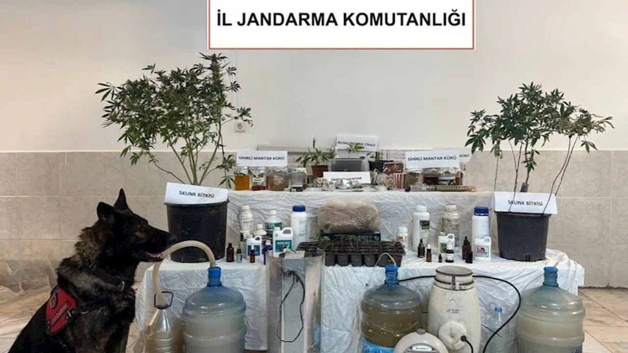 Muğla İl Jandarma Komutanlığı ekipleri, Ortaca’nın Tepearası Mahallesi'nde yaşayan B.Ç.K.’nın piyasaya yüklü miktarda uyuşturucu süreceği bilgisine ulaştı. Cumhuriyet Başsavcılığı koordinesinde, şüphelinin evine düzenlenen operasyonda 6 kilo 112 gram sihirli mantar, 27 kök Hint keneviri, 1 hassas terazi, 17 parçadan oluşan iklimlendirme ve ışık sistemi, 7 gram kenevir tohumu, 57 litre sahte içki, 1 kurusıkı tabanca ve şarjör ele geçirildi.