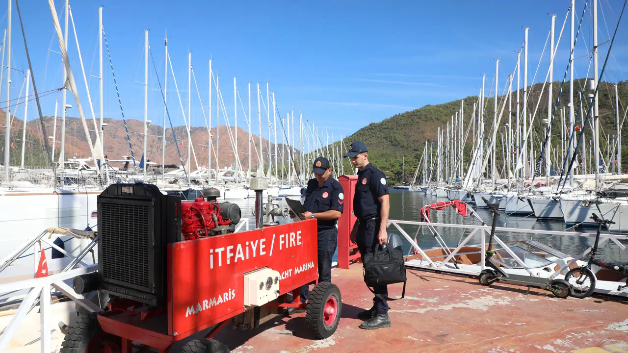 MUĞLA Büyükşehir Belediyesi İtfaiye Dairesi Başkanlığı önleme ve denetim birimi ile zabıta ekipleri, yangın güvenliği tedbirlerini artırmak amacıyla il genelinde marina, liman ve çekek yerlerinde denetimlerini sürdürüyor.