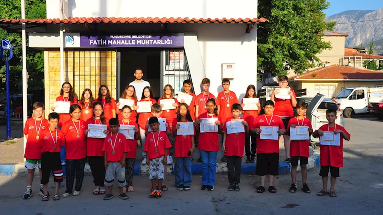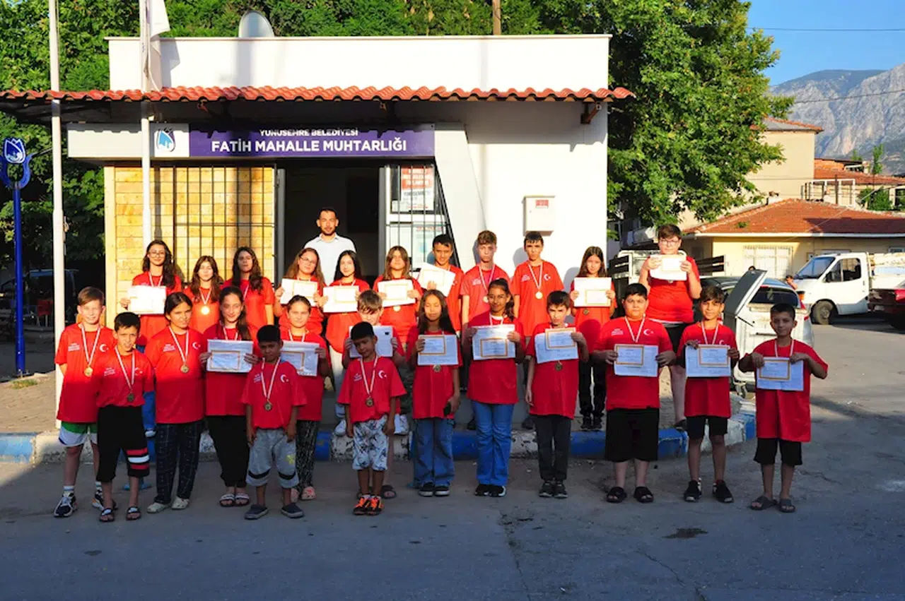 Muhtar Tansel Satıcı, takdir belgesiyle muhtarlığa gelen çocuklara, formalarını hediye ederek, madalyalarını taktı. Çocukların yanı sıra, çocuklarını milli forma ve madalya ile gören aileler de mutlu oldu. Öğrencilerden Zehra Azize (11), “Takdir aldığım için muhtar amca, milli takım forması ile madalya verdi. Çok mutluyum" dedi.