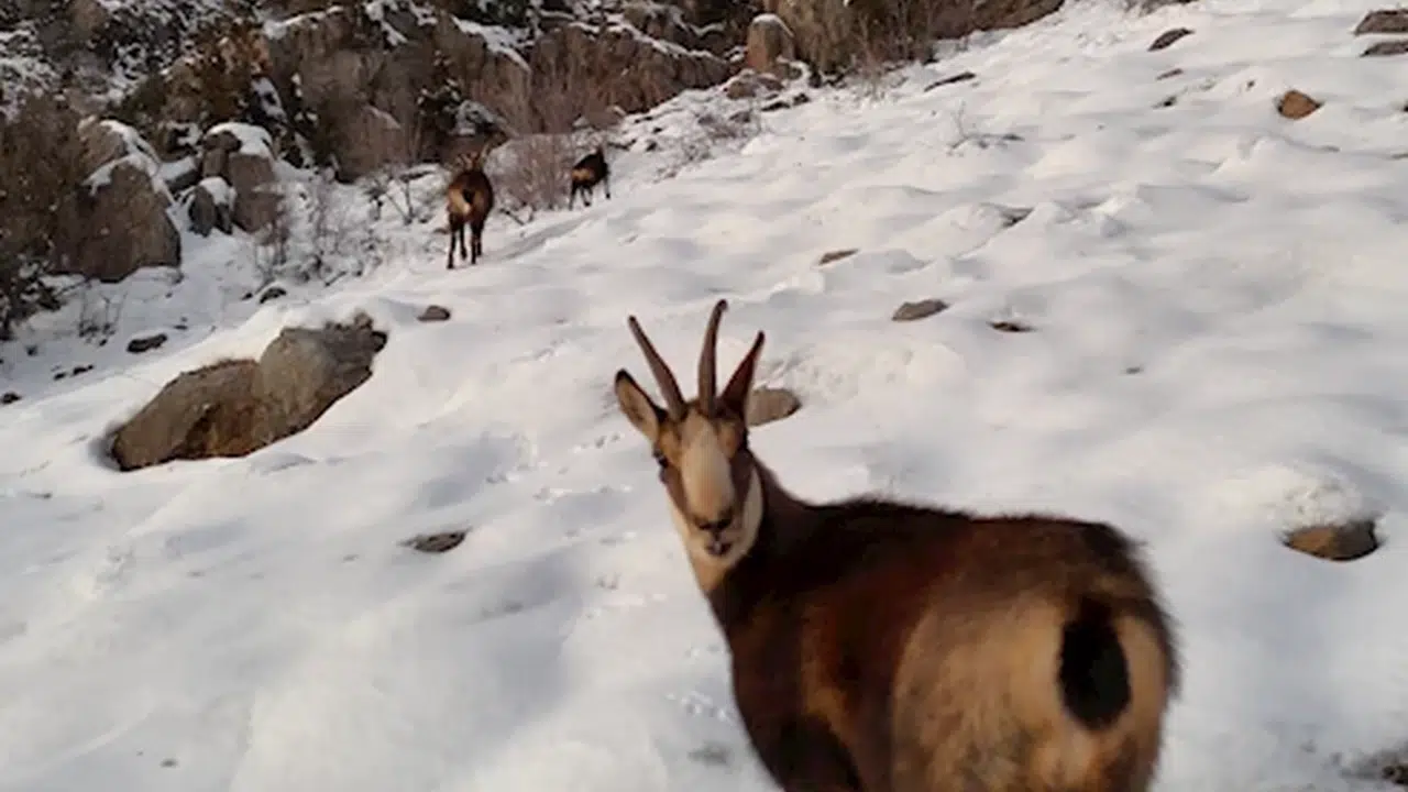 Erzincan'da doğal yaşamı gözlemleyen Meriç Yeter, Munzur Dağları'nda dronla görüntü alırken çengel boynuzlu dağ keçilerine rastladı. Uluslararası Doğayı Koruma Birliği'nin nesli tükenme tehlikesi altında olan türlerde kırmızı listede yer alan 'Şamua' olarak da bilinen çengel boynuzlu dağ keçilerini görüntüleyen Yeter, bir süre hareketlerini takip etti. 3 bin 300 metre rakımda karlı arazide bir süre beslenen keçiler, daha sonra gözden kayboldu. (DHA)