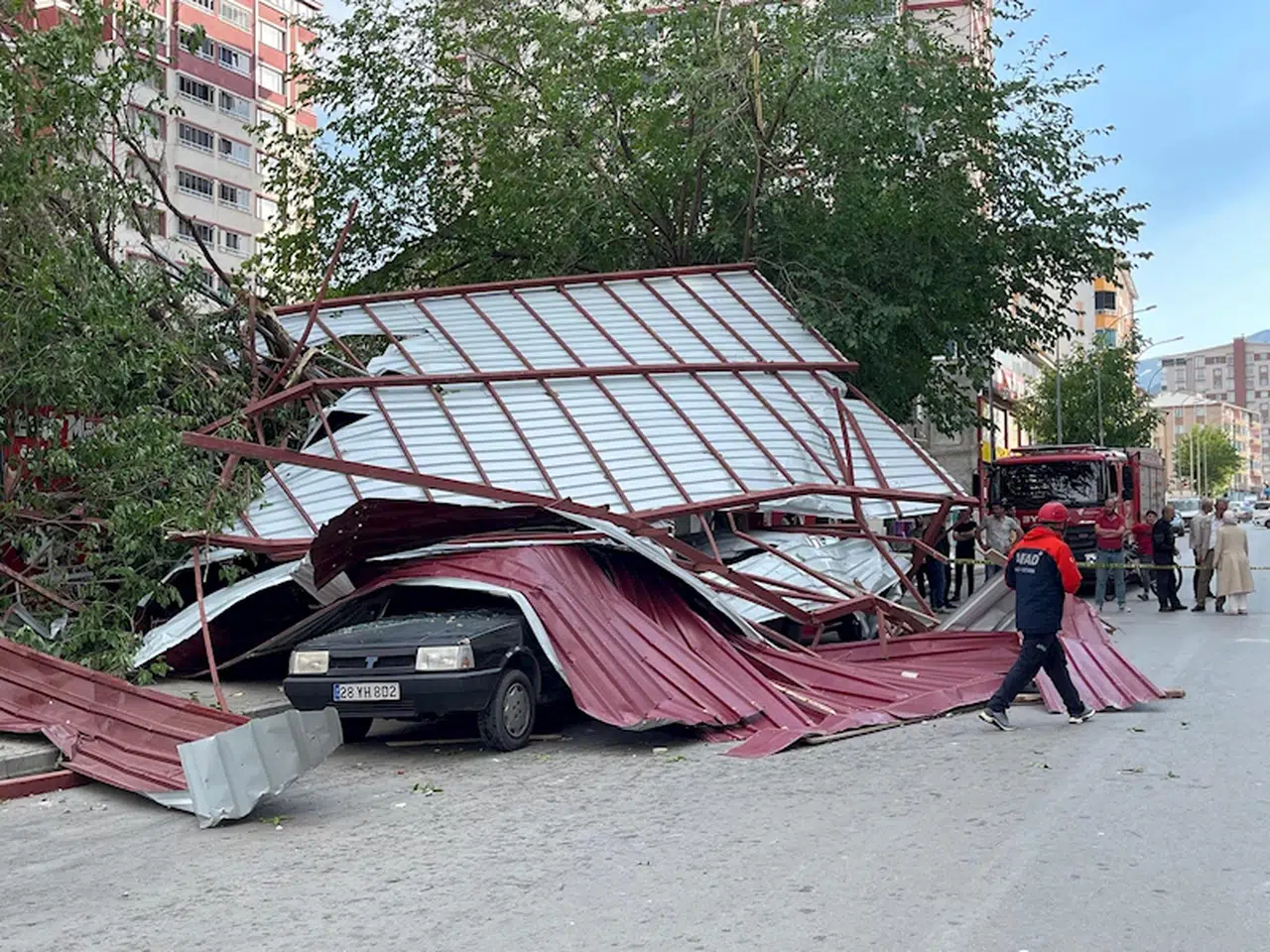 Muş’ta, öğlen saatlerinde başlayan şiddetli fırtına, hayatı olumsuz yönde etkiledi. Saatte hızı 60 kilometreye ulaşan fırtına nedeniyle, bazı ev ve iş yerlerinin çatısı uçtu. Korku dolu anların yaşandığı kentin Hürriyet Caddesi’ndeki 12 katlı bir binadan uçan çatı, biri seyir halinde 3 araçta maddi hasara neden oldu. 12 katlı binadan kopan çatının yaklaşık 500 metre havada uçtuğuna şahitlik eden Süphan Bağatur, “Çatının uçma anına şahit oldum. O esnada düşeceği evimin bahçesine doğru koştum. Can kaybı olmamasından dolayı mutluyuz. Maddi bir kaybımız var. Oda önemli değil” dedi.