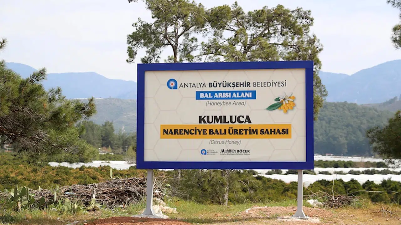 ANTALYA, (DHA)- ANTALYA Büyükşehir Belediyesi, arıcıların güvenli üretim yapabilmesi için narenciye bahçelerine uyarı tabelaları yerleştiriyor. Bu kapsamda Kumluca ve Finike ilçesinde narenciye üretim sahalarına yerleştirilen tabelalarla farkındalığın artırılması amaçlanırken, Büyükşehir Belediyesi narenciye balı için coğrafi işaret tescil çalışması başlatacak.