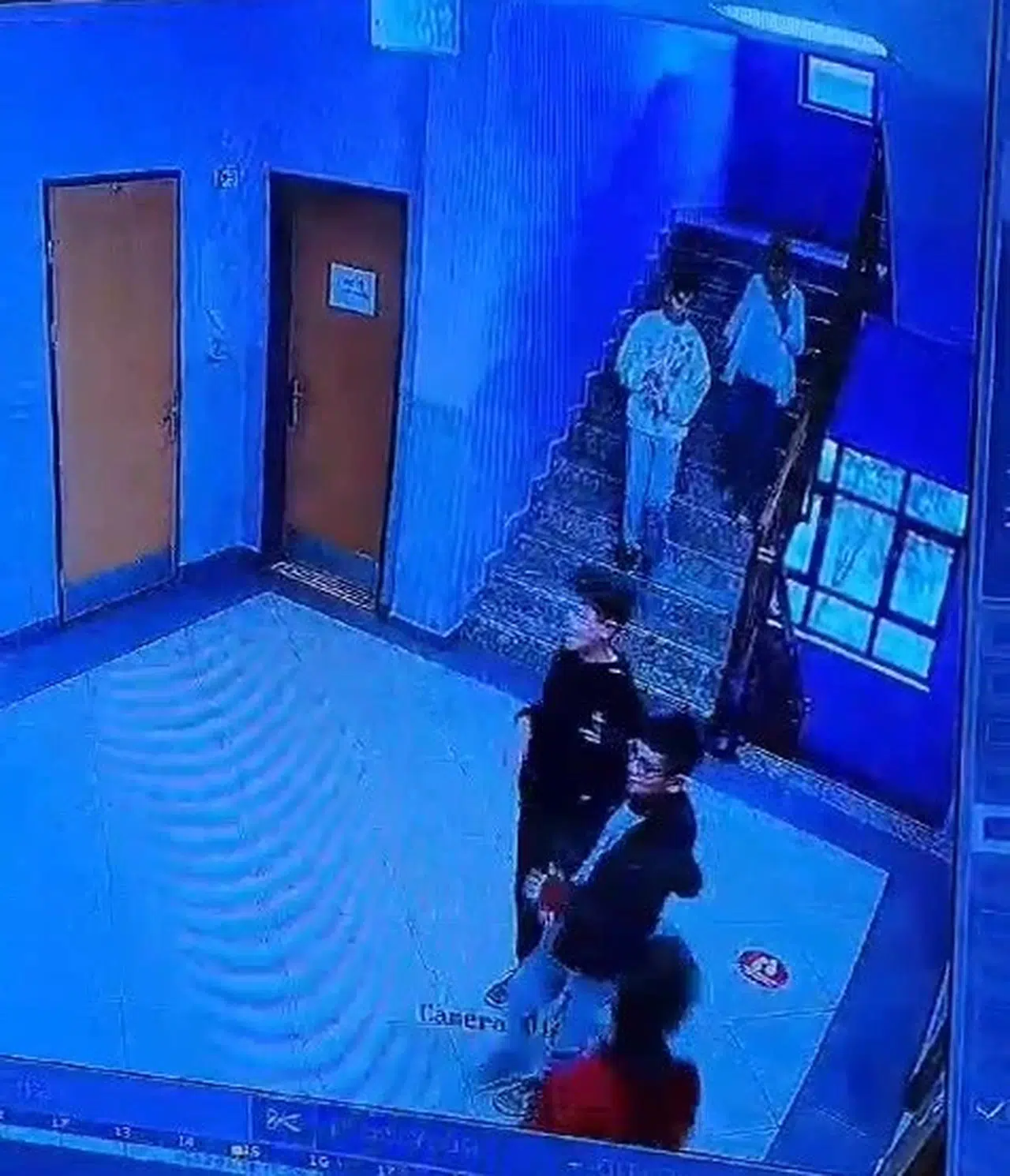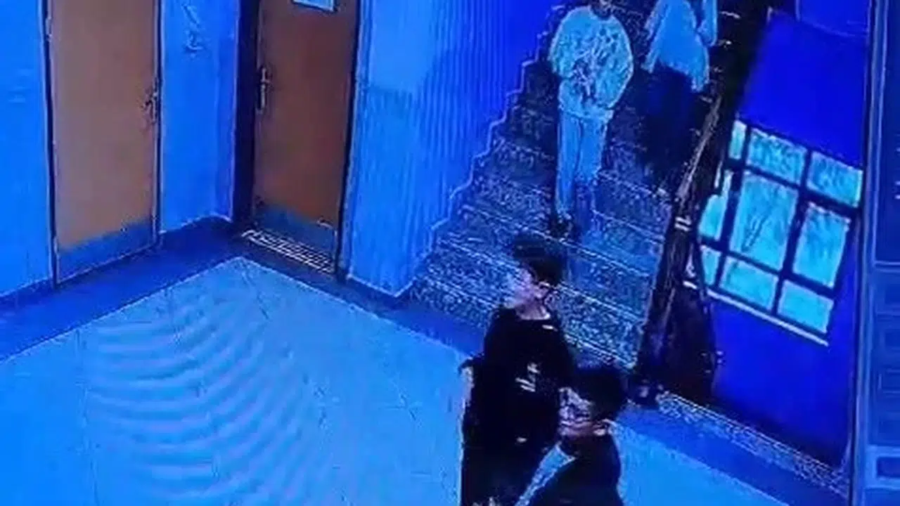 Okulun güvenlik kamerasına yansıyan görüntülerde; boğazını tutarak merdivenlerden inen kız öğrencinin öğretmeninin yanına geldiği, öğretmenin ise yaptığı Heimlich manevrasıyla öğrencinin nefes borusuna kaçan patlamış mısırı çıkardığı anlar yer aldı. (DHA)