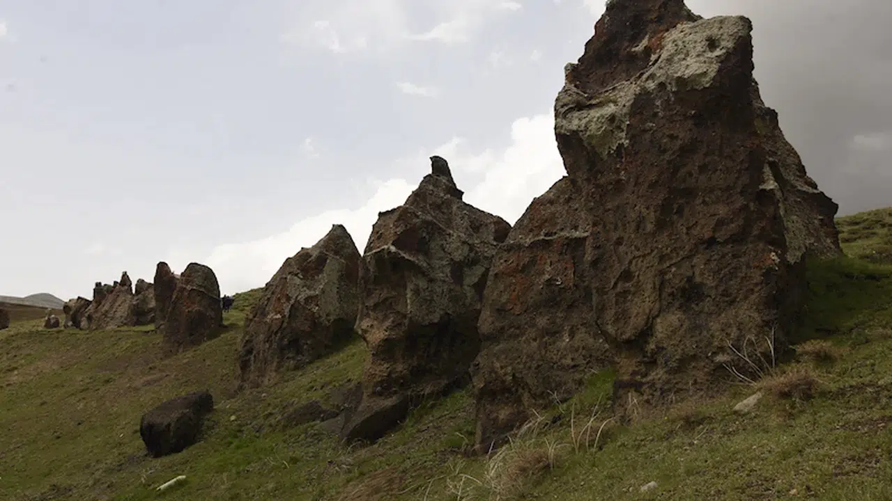 Özcan ÇİRİŞ-Ceren ÇALIŞKAN/BİTLİS, (DHA)- BİTLİS'in Tatvan ilçesinde, her geçen gün tahrip olan ve halk arasında şekillerinden dolayı ‘Nemrut'un develeri’ olarak bilinen kaya bloklarının korunmaya alınması için çalışma başlatılacak. Bölgede incelemelerde bulunan Bitlis Valisi Ahmet Karakaya, volkanik patlama sonrası oluşan kayaların gelecek kuşaklara aktarılması için çalışma başlatılacağını söyledi.
