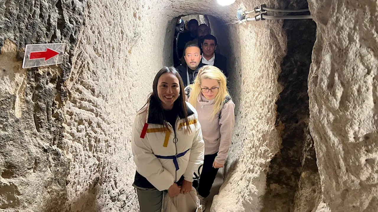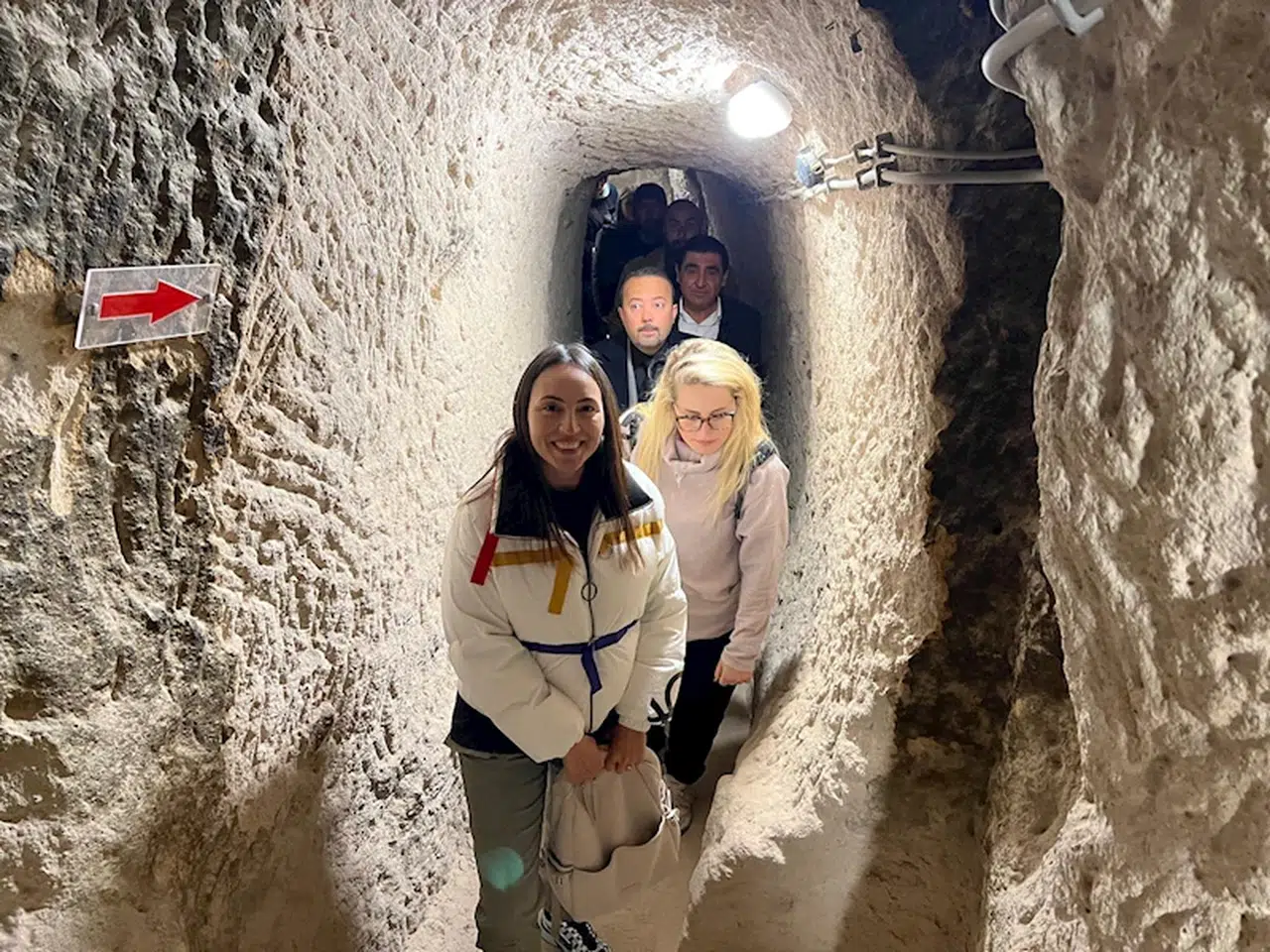 NERO üyeleri, Turizm Haftası kapsamında Acıgöl ilçesindeki Tatlarin beldesinde tarihi ve turistik merkezlere ziyaret gerçekleştirdi. NERO üyeleri, bölgeyle ilgili yetkililerden bilgi aldı. NERO Başkanı Özay Onur, "Tatlarin yeraltı şehri oldukça yamaç bir bölgede kurulmuş devasa nitelikte bir turizm merkezi. Roma ve Bizans dönemlerinde etken şekilde kullanılan ve düşman saldırılarından korunabilmek amacıyla yüksek korunaklı bir mekanizmal yapı da oluşturan sert bir taş olan bazalttan yapılı dev sürgü taşlarının bulunduğu ve bölgenin ilk tuvaletli yeraltı yerleşimi özelliğini de taşıyor. Oldukça nadir bir yer burası. Yeraltı yerleşiminde özellikle düşmanları tuzağa düşürmek amacıyla tüf kayaya oyulu derin çukurların yapıldığı alanlara da sahip Tatlarin yeraltı şehri gerçekten gezilmesi ve görülmesi bir mekan" diye konuştu. (DHA)